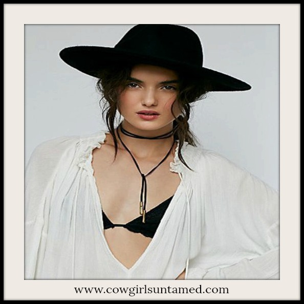 Join the trend and that boho chic cowgirl look with our gold tipped lasso choker! No closure. Wrap it around your neck and create your own look. Gold tone tip.