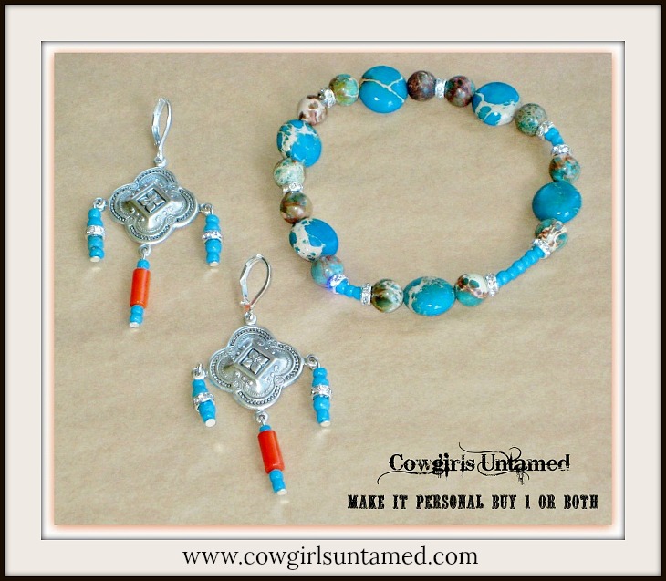 San Pablo ~ Blue Sea Sedmiment Jasper Gemstone with Turquoise & Rhinestone Stretch Bracelet