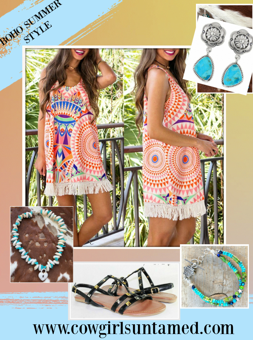 Perfect for summer, this colorful stretchy mini dress is casual and comfy, and can also be worn as a bikini coverup or for after swimming relaxing. I love mine! White fringe trim. Racerback. Colors in dress: orange, coral, pink, lime green, navy blue, white, purple, red. 33-34.5" Long - standard mini dress length. Fabric: Polyester+Spandex.