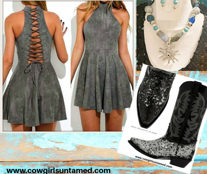 Beautiful faux suede fit n flare mini dress with sexy lace up back! Our Kara Dress is definitely an eye turner! Wear with boots or heels, and pair it with some of our handmade jewelry to finish the look. Cotton blend.