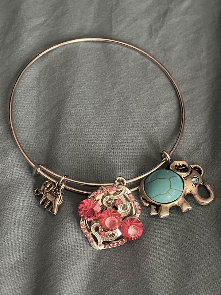 These boho bangles are itchin' for you to customize with our snap charms! With one bangle you can create so many looks with our snap charms! Makes a great gift! These have 2 charms: 1 silver charm and 1 waiting for you to select a snap charm. These are squeeze bangles that is adjustable by squeezing the sides. Alloy metal.