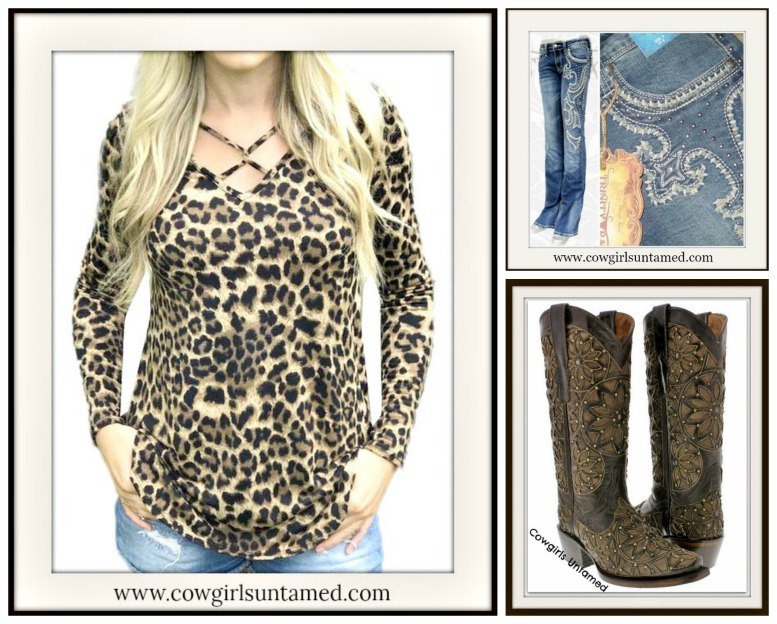 Add some spice to your closet with this bit of eye candy! Flirty and sexy, this long sleeve top with criss cross neckline is a must have! Soft and stretchy! Casual and fun. Love!