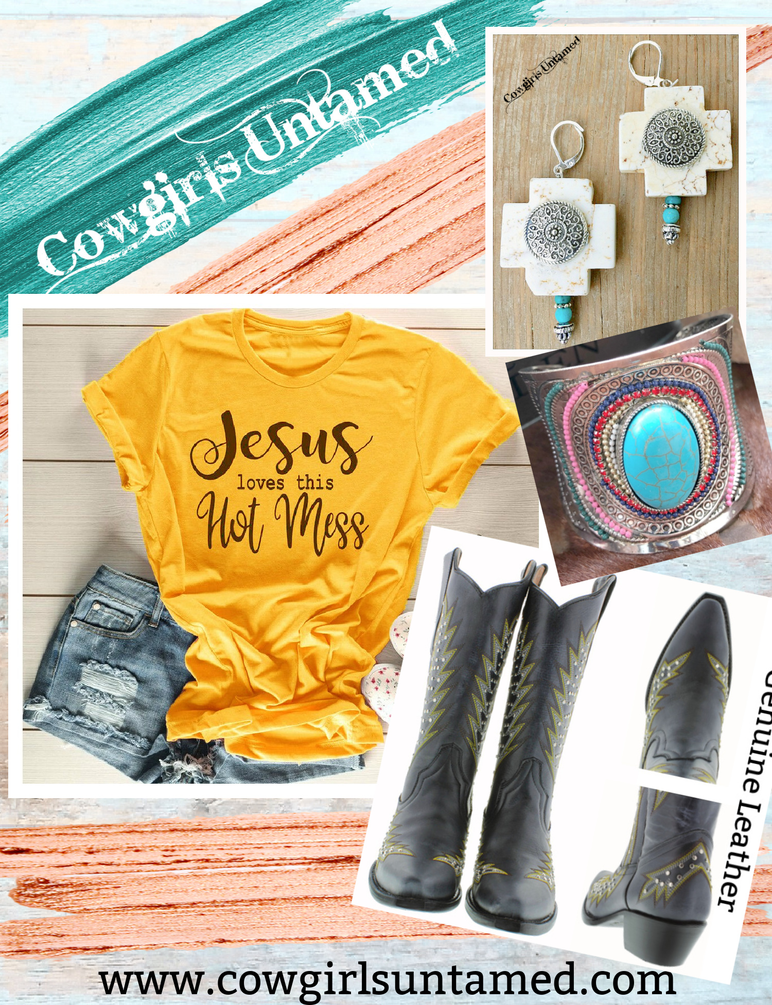 Golden Yellow "Jesus Loves This Hot Mess" Top