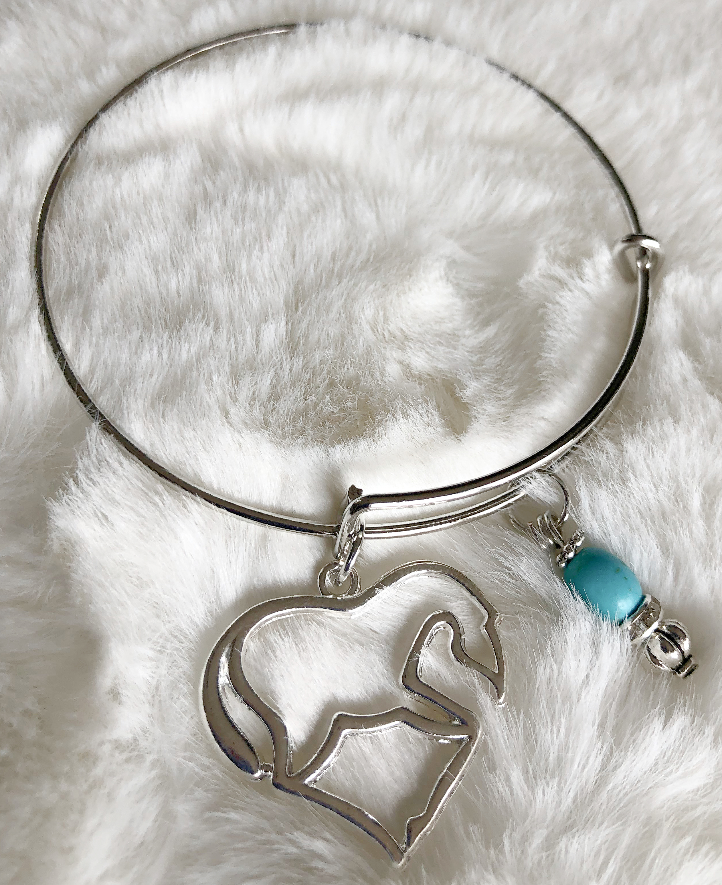 This custom charm bangle will be your "go to" bracelet! Cute and stylish, charm bangles are on trend! Pull sides to expand to get on and off.